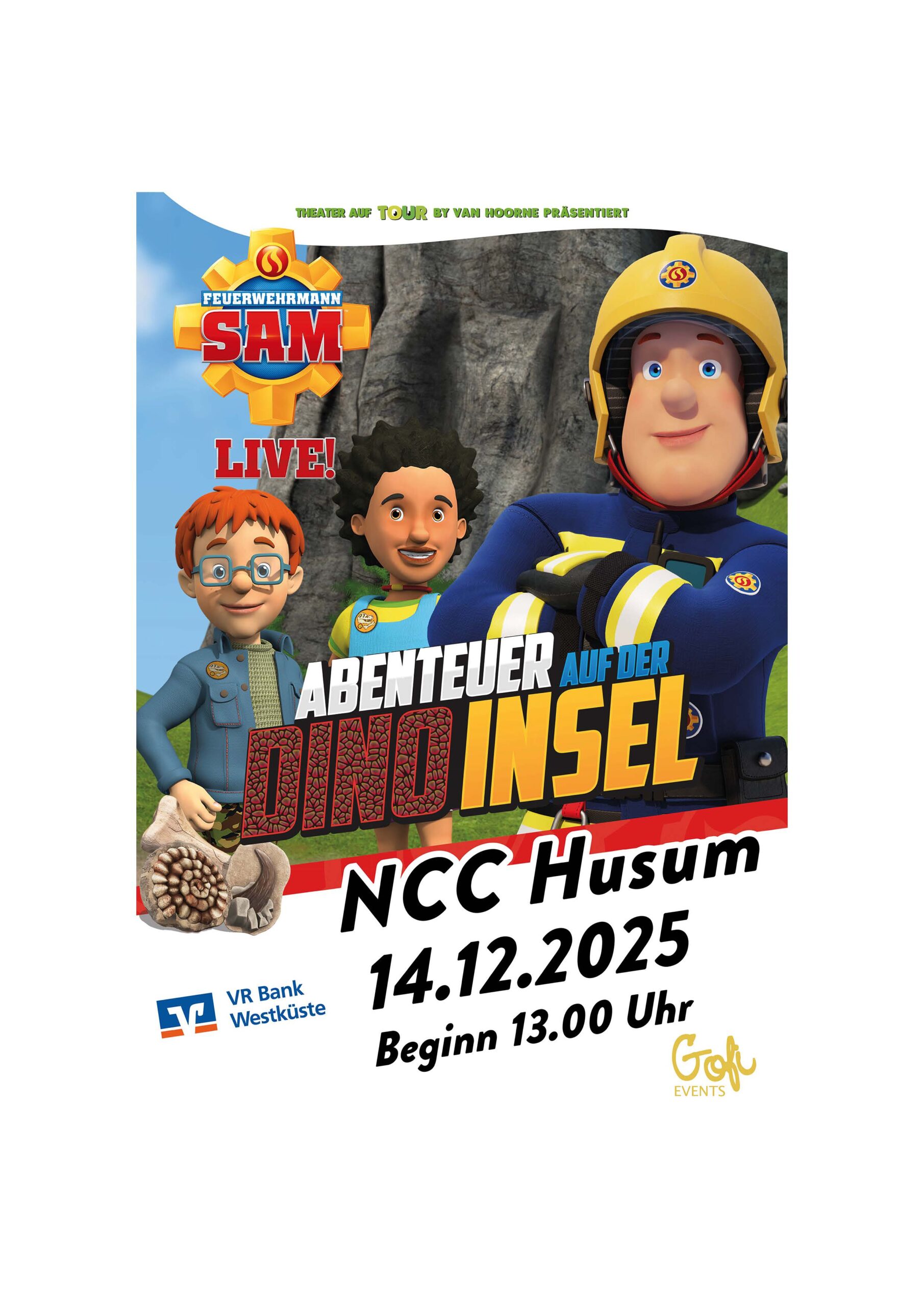 Feuerwehrmann Sam rettet weiter… Nach dem Erfolg von „Feuerwehrmann Sam Live! – Der verlorene Piratenschatz“ kehrt der Held der Nachbarschaft mit einem nagelneuen Theaterabenteuer zurück! Gemeinsam mit dem Feuerwehrteam, Mandy und seinen Freunden tritt Feuerwehrmann Sam in der Familienshow „Feuerwehrmann Sam Live! – Abenteuer auf der Dino Insel“ in Aktion.